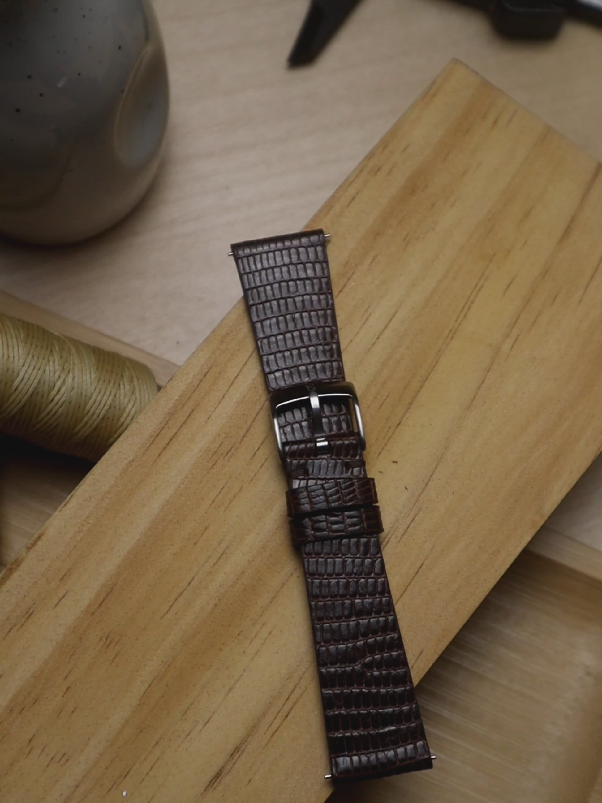 Sourced from the highest quality lizard hides, our lizard leather straps are known for its unique textured scales and patterns, imparting a sense of luxury that is unparalleled by any other material, making it a prestigious addition to your collection. This is truly a one-of-a-kind type of strap!