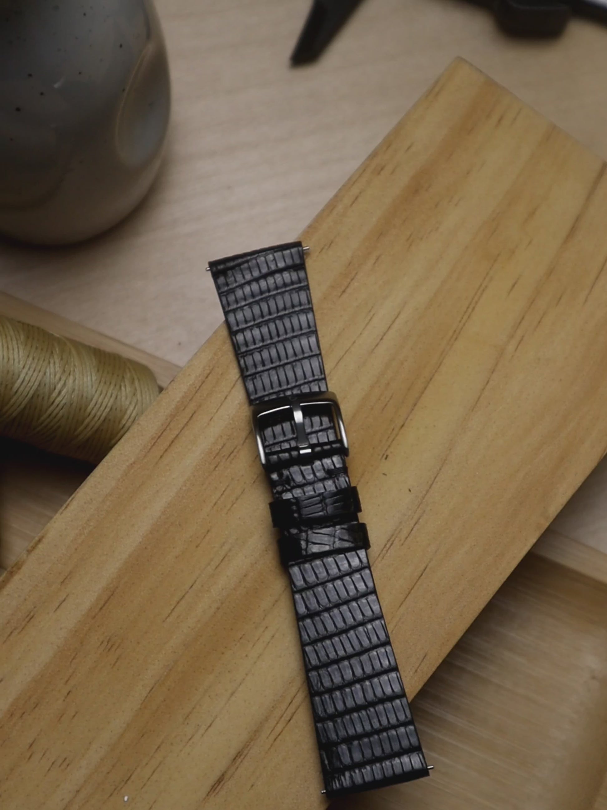 Sourced from the highest quality lizard hides, our lizard leather straps are known for its unique textured scales and patterns, imparting a sense of luxury that is unparalleled by any other material, making it a prestigious addition to your collection. This is truly a one-of-a-kind type of strap!