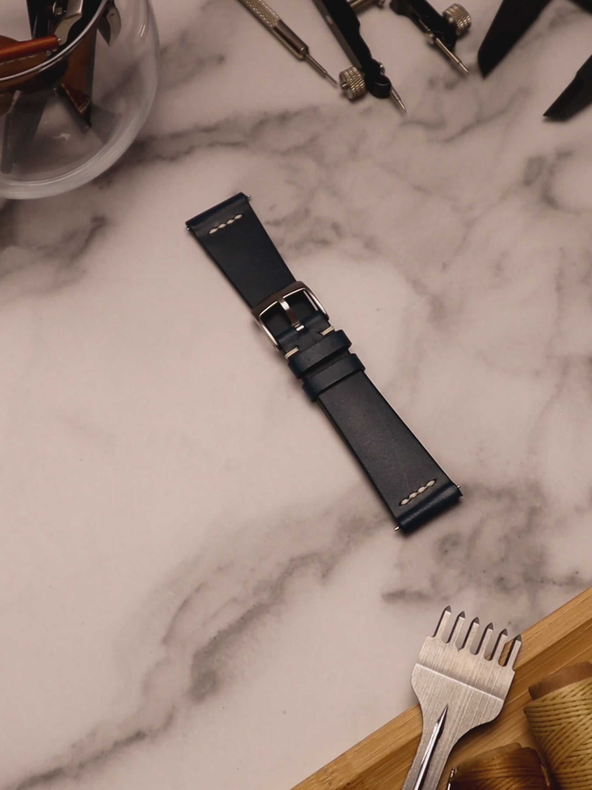Our Row-Stitch strap design is identified by its exquisite row stitching along the strap's lug area. This classic technique doesn't just add a touch of vintage vibe to your timepiece, its deliberately stitched near the lugs (where the highest stress points are located) to further reinforce the durability and longevity of your strap. Now that's a win-win.